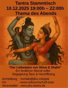 Auch unsere JIKO Tantra-Stammtische nähern sich ihrem Jahresausklang und die letzten beiden Begegnungen dieses Jahres tragen noch einmal die ganze Schönheit und Essenz unseres gemeinsamen Weges in sich.